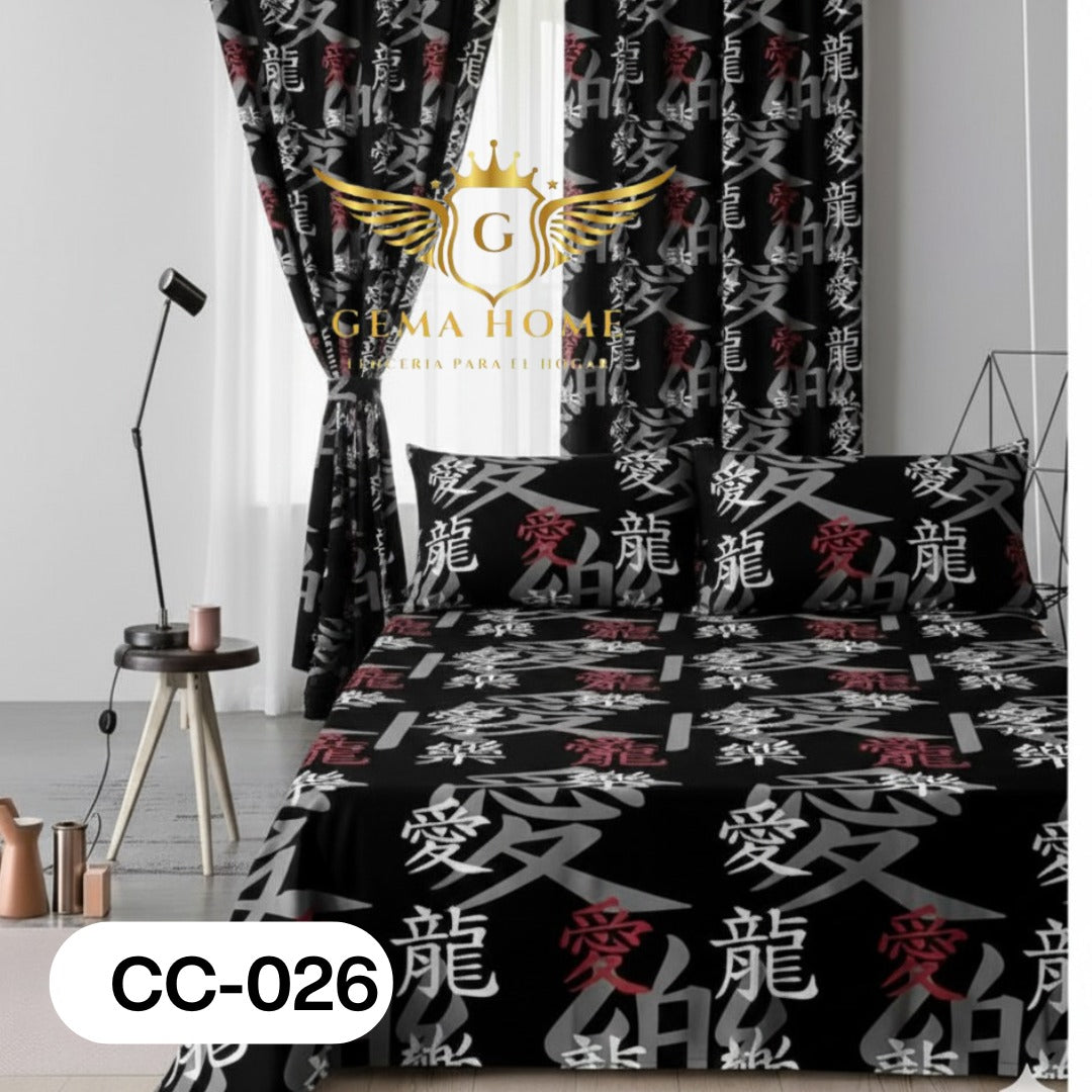 KIT COMPLETO: SÁBANAS + CORTINAS INCLUIDAS