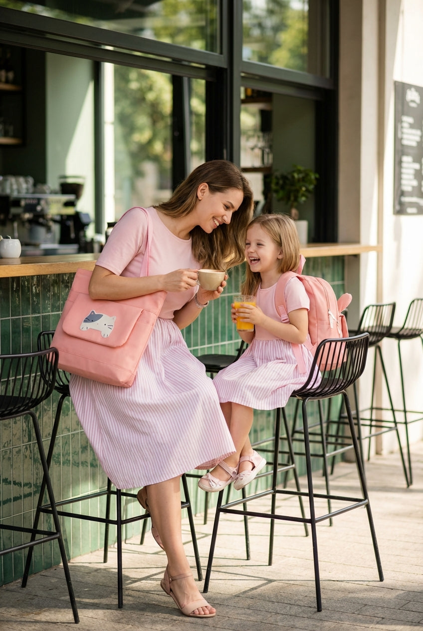 Gracias a que este kit escolar incluye varias piezas independientes, puede compartirse fácilmente entre mamá, hija, hermana o amigas, adaptándose a diferentes momentos del día: