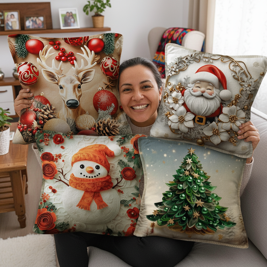 Descubre cómo este set de fundas navideñas con luces LED transforma por completo la atmósfera de tu hogar. Su iluminación cálida integrada crea un ambiente festivo inmediato, ideal para dar vida a tu sala, dormitorio o cualquier rincón especial. Cada diseño —desde Santa hasta el muñeco de nieve— aporta personalidad, brillo y emoción visual, convirtiendo cualquier espacio en una escena navideña acogedora digna de una postal. Además, son prácticas, lavables y muy fáciles de instalar, permitiéndote decorar sin esfuerzo y en segundos. Perfectas para sorprender a invitados, elevar tu decoración o regalar un toque de magia navideña.